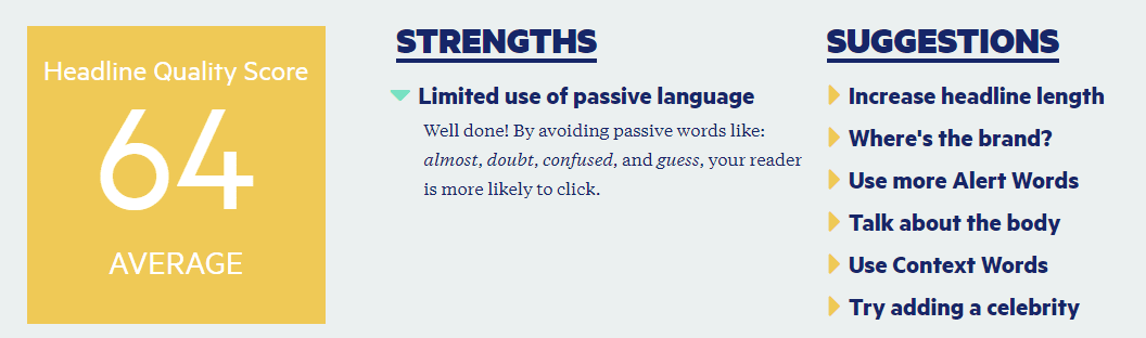 Cons: The tool do not provide suggestions for improving headline score.