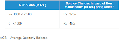 “It is mandatory to maintain a minimum AMB (Average Monthly Balance) of Rs. 10,000 (metro/urban branches), Rs. 5000 (semi-urban), Rs. 2500 AQB (rural branches). If the balance is not maintained, the following service charges will be levied”