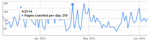 The number of crawled pages has decreased from 218 in 21 May to 48 in 22 May.